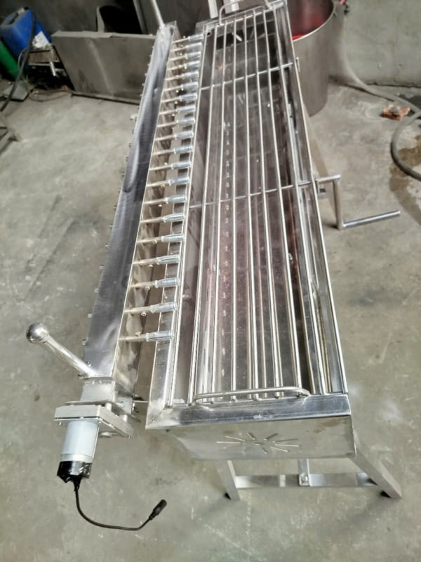 Máy nướng thịt 20 xiên bằng inox là một trong những thiết bị nướng thịt chuyên dụng dành cho các quán ăn, nhà hàng hoặc các bếp ăn công nghiệp. Sản phẩm này có khả năng nướng cùng lúc 20 xiên thịt, giúp tiết kiệm thời gian và công sức cho người sử dụng. Máy được thiết kế bằng chất liệu inox cao cấp, đảm bảo độ bền cao, dễ dàng vệ sinh và chống rỉ sét.